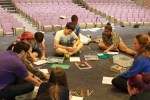 We had many old and known faces, but I was very happy with the new faces, faces I’d either only seen in the REC dept plays or totally new people. It was a wonderful way to meet the incoming freshmen. With so many people, we split up into three groups. Besides me (Ms. Figg-Franzoi) leading the workshops, I’ve invited two amazing actors from the community, Mark Puckinsky, a BFA student in Theatre at UWM and graduate of HHS and Matt Wickey, who recently finished his masters in Classical Theatre at Kingston University in England. These two men made the workshops extra special this year. Mark worked with everyone on Shakespeare’s sonnets, allowing them to feel the text and become more comfortable with the wording of Elizabethan England. Branching off with more Shakespeare, Matt taught the much needed laws of scansion and feeling the rhythm of the text, feeling the heart beat in the words.