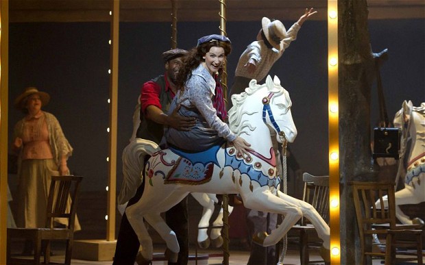 Since the term ‘domestic violence’ first appeared in the 1970s, it is clear that it did not exist when Carousel was produced, but neither did a social understanding of this type of abuse. As Theodora Ooms, states, “rape and domestic violence were still treated as personal rather than social problems” –a situation we can actually see in the characters of the musical. Although they all condemn Billy for hitting Julie, none of them takes action against him, and the scenes where he either hits his wife or his daughter, take place in their house, in the domestic sphere where nobody can interfere. To the modern audience we sit horror stricken that no one does anything about it, or that the musical takes this matter so lightly. We have to think that it is because it was written in 1945 and based on a play written in 1909. But even there, it falters, Rodgers and Hammerstien take away some of the grit from Liliom and gloss over the abuse in their musical. In Liliom, all characters spoke their minds against Liliom’s (Billy) abuses, even Julie herself, the victim of her husband’s anger. When he commits suicide Julie cries over his death, although she also reproaches his behavior: “It was wicked of you to hit me… on the breast and on the head and face… but you’re gone now. (She sits next to him and touches his face.) You treated me badly; that was wicked of you. But sleep peacefully, Liliom… you bad, bad boy, you. I love you.”