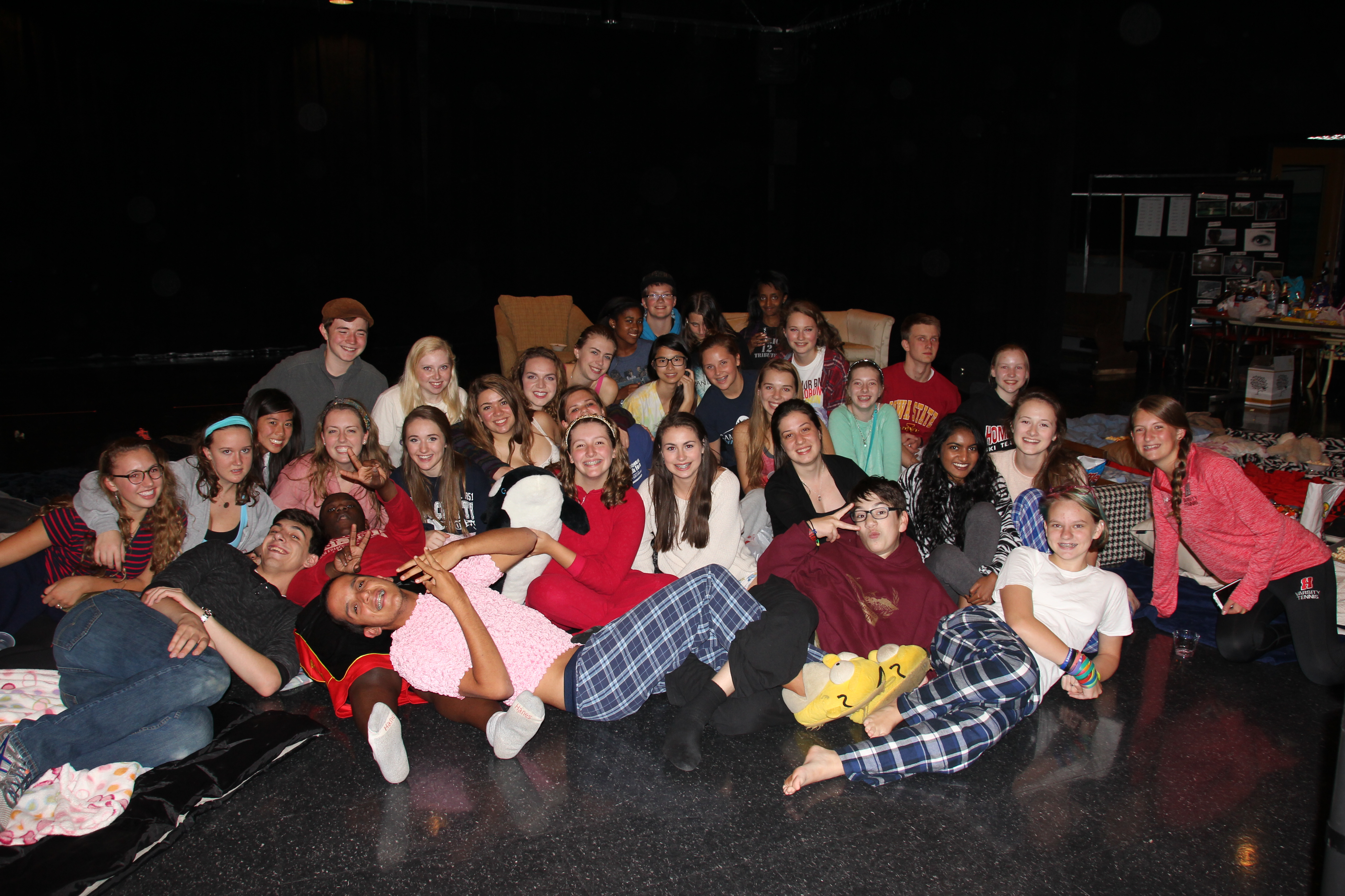 It’s 9pm on a Friday night and I’m in the presence of 30 Drama Club students watching Tim Burton’s “Alice in Wonderland.” It’s Drama Club movie night! Everyone is snuggled in blankets, perched on couches or sitting on pillows with piles of food around them in our wonderful Black Box Theatre.