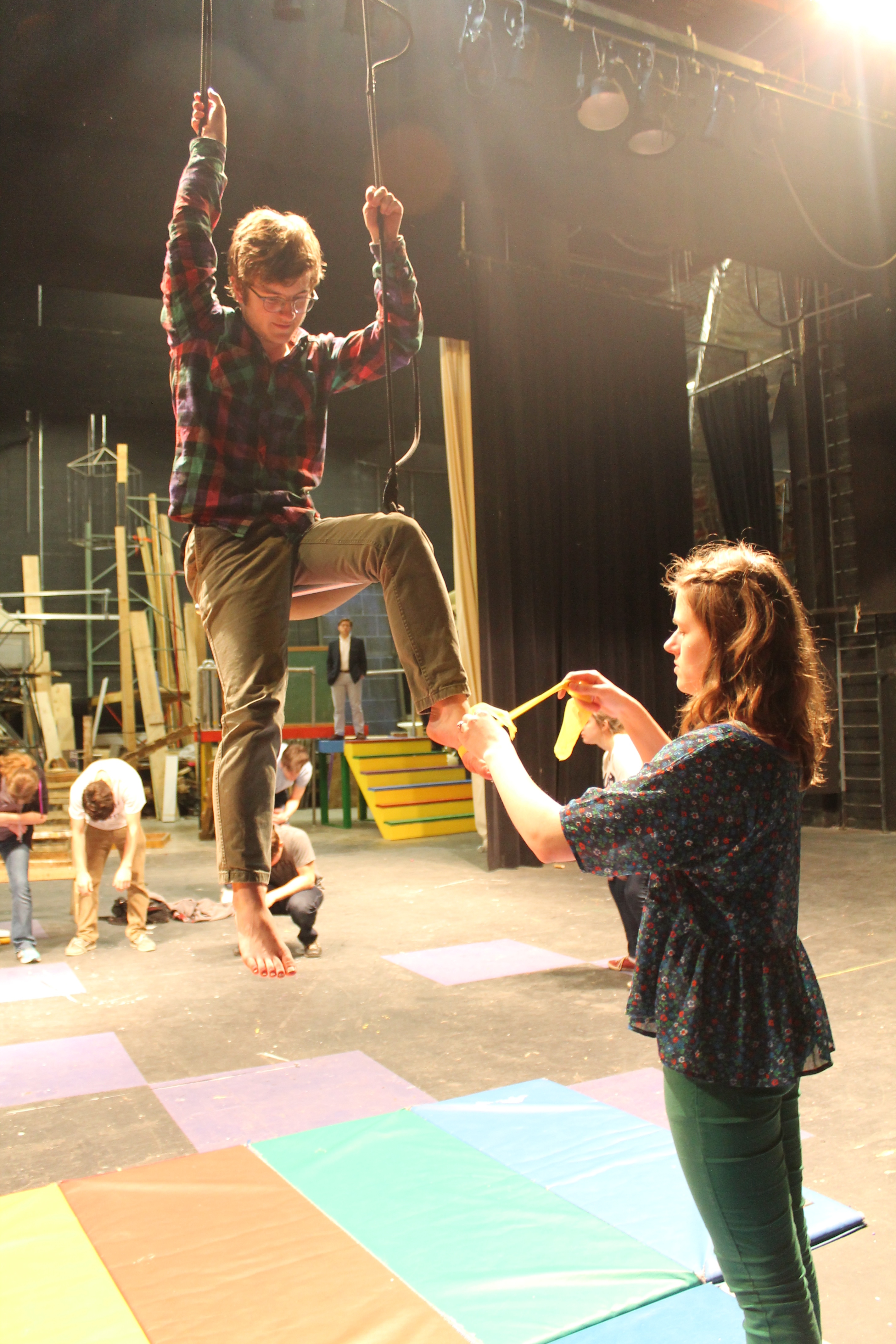 As many of you know I, Amelia Figg-Franzoi, or as most of you call me “Mom,” am neck deep in grad-school. Some of you know that for the past month I’ve been very excited about research findings and ideas I have for the Spring Play this year and also ideas for our Spring Play next year. This year we have a trapeze for our show… along with two swings. It’s been a trip teaching some students how to use the trapeze and finding fun and safe moves to do.
