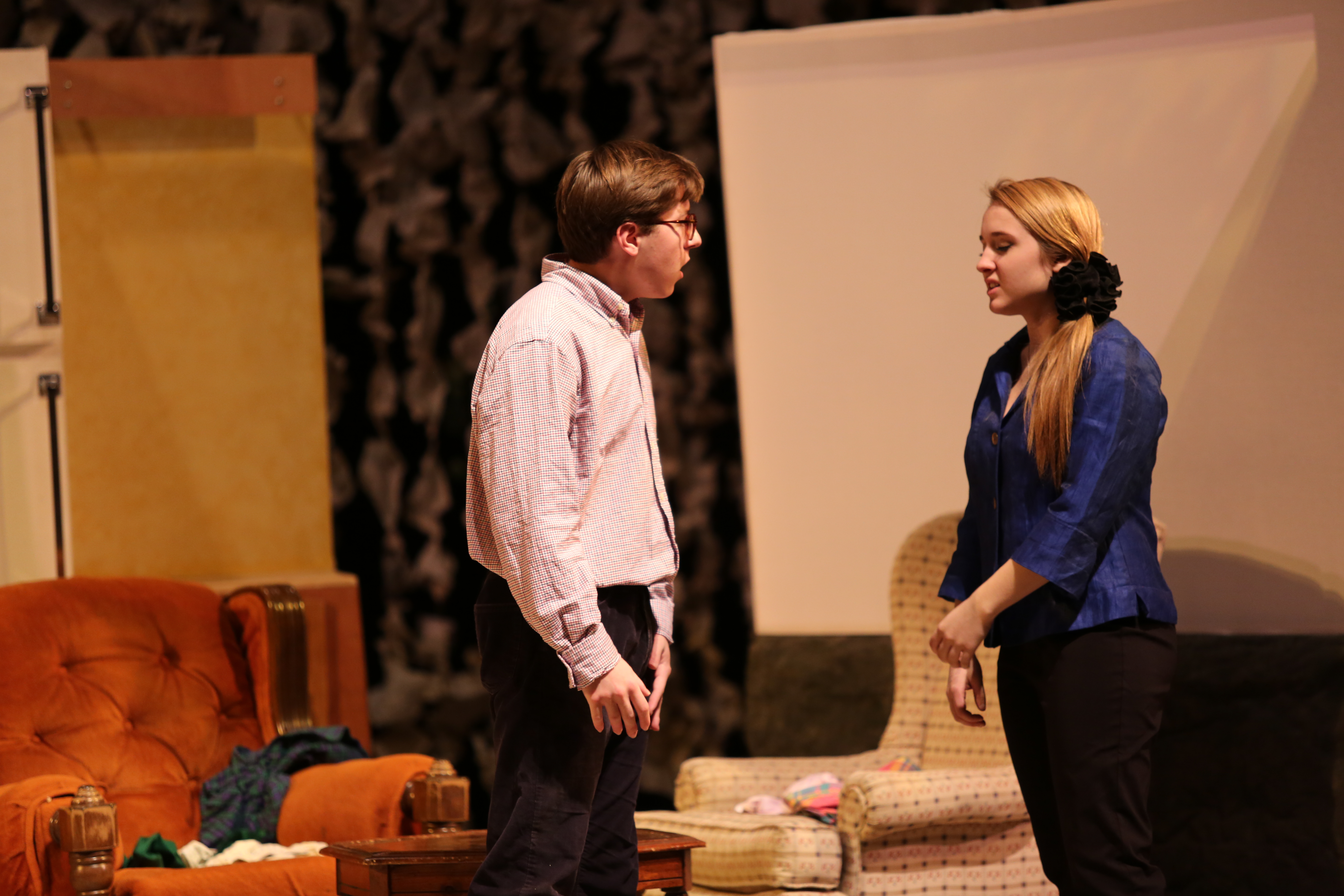 Initially, I was surprised to see the auditorium itself. The auditorium was not much by any means but compared to ours, we should be grateful for our space. Our auditorium, regardless of its current state, has many advantages that we are able to use. Upon viewing the first one act play, Bubble Boy, the overall atmosphere of the stage from the audience’s perspective seemed very tight. The space is only suited for only so many set pieces and I noticed this in particular. When our class performed, I was right in my initial thought and realized that the space was not what we were used to. We had to adjust accordingly to the stage with our large and abundant set pieces. It wasn’t easy and required work, but we managed to pull it off. As a group, we went along with what we had to work with and simply performed our very best for the judges. Be mindful, there is most certainly room for improvement. The size of the theatre did not affect our ability to draw the audience into the story.