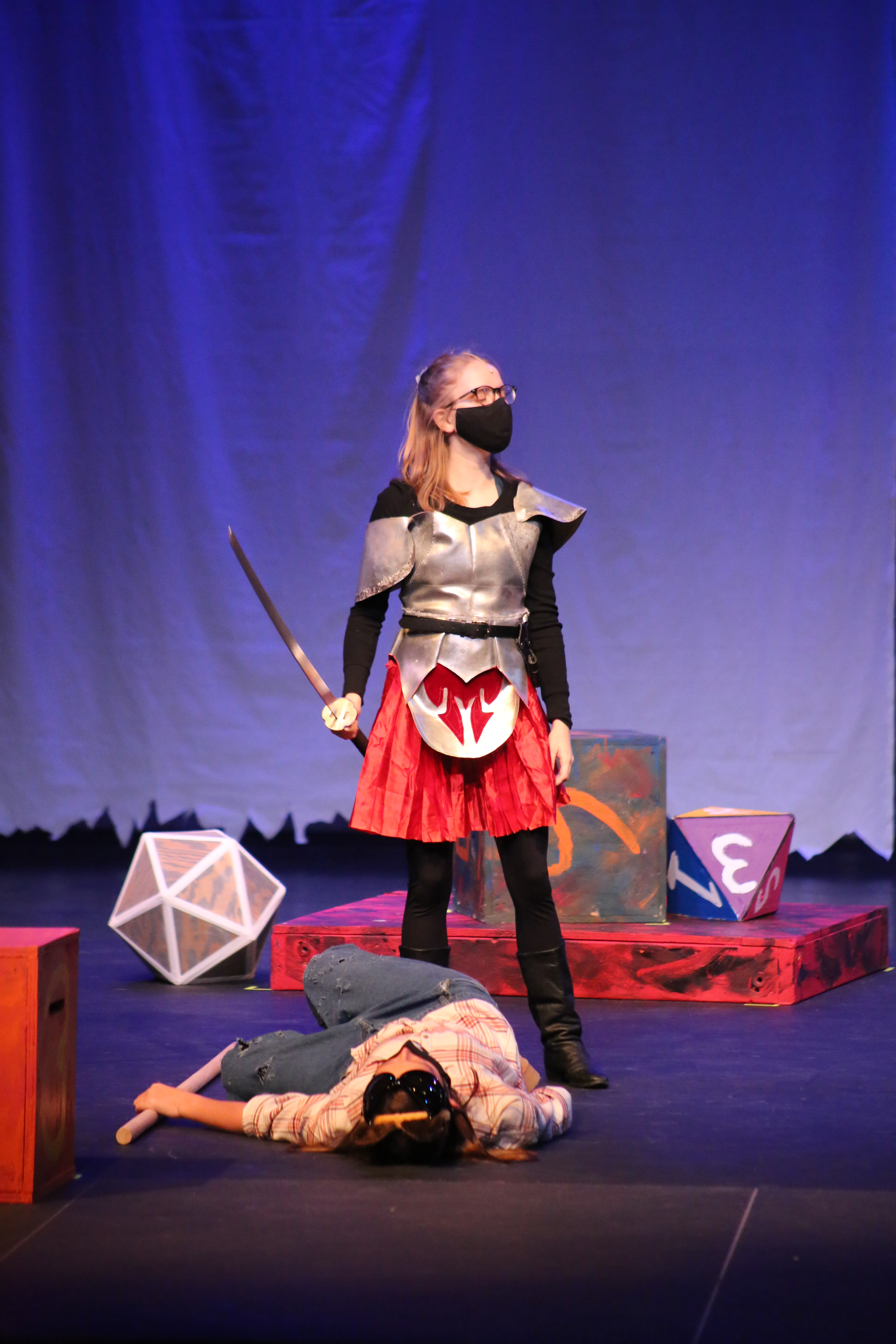 The “she” who kills monsters is 15-year-old Tilly Evans, of Athens, Ohio; her Dungeons & Dragons name is Tillius the Paladin. As the play opens, Tilly has been killed in a car crash, leaving behind Tilly’s older sister, Agnes the Average, and a notebook containing “The Lost Soul of Athens,” a D&D adventure that Tilly created. Agnes never paid much attention to her sister, but now she’s hoping to connect through the notebook, so she seeks out über-geek freshmen Chuck. Suddenly Agnes finds herself inside the notebook, joining Tilly and her friends Lilith Morningstar and Kaliope Darkwalker on a quest to recapture the lost soul of Athens from Orcus, demon lord of the underworld.