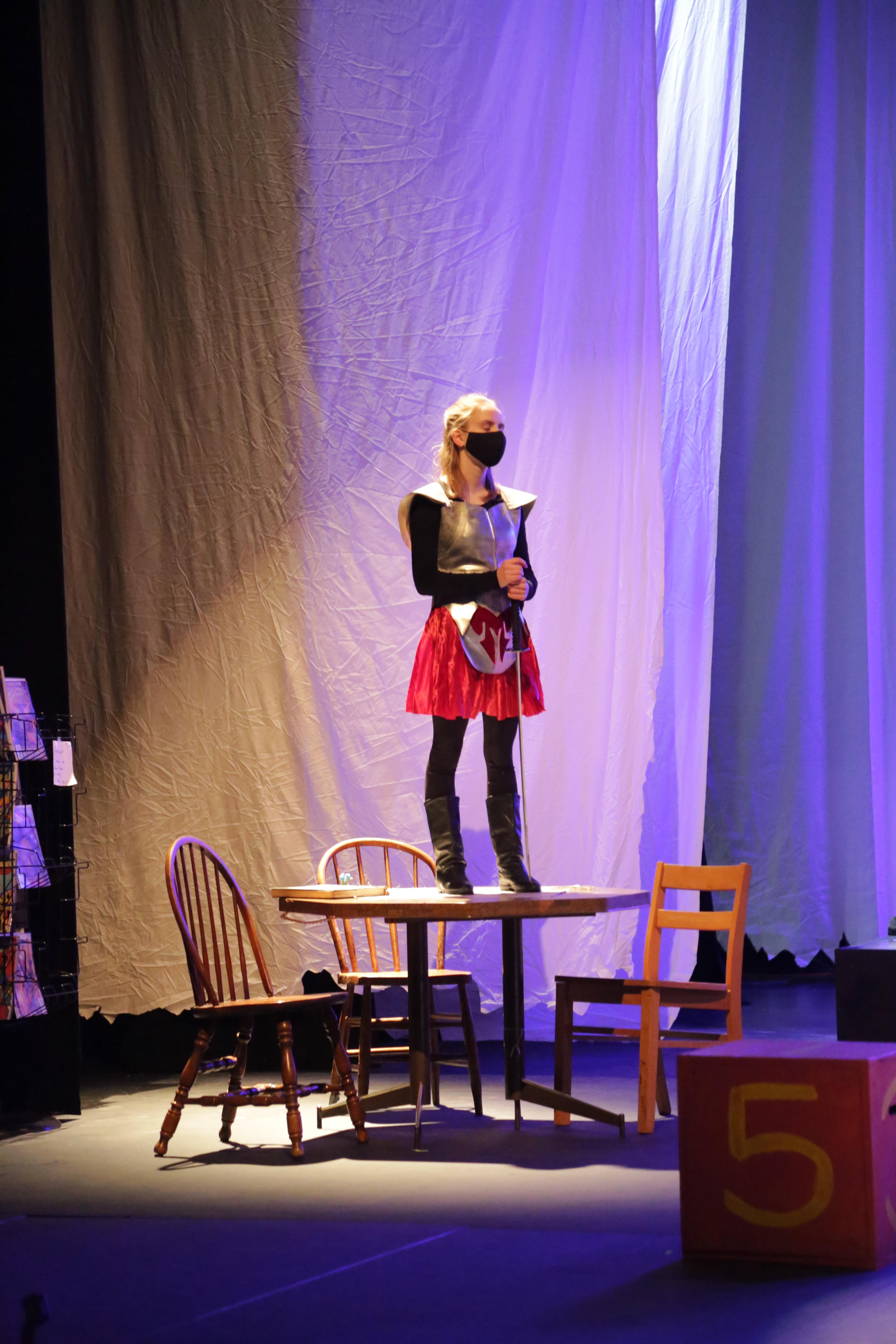 Putting on a show during COVID means wearing a mask and social distancing. While some may assume that this would hinder a performance, it actually forces actors to perfect their craft. We can no longer rely on our mouths moving for the audience to know who’s talking, so we’ve all had to become much bigger in our actions. 13 of the actors, including myself, have also learned how to put on our own microphones! It’s a daunting and educational task for sure.
