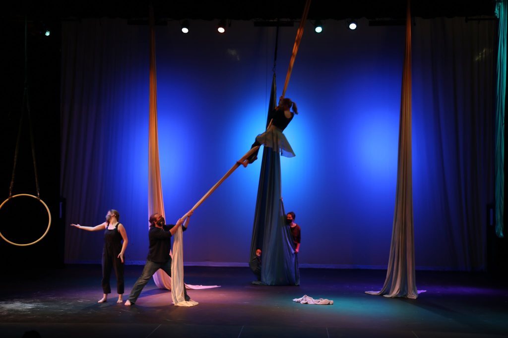 If you’re still curious about what you can do in Theatre Seminar, the students of years past can help illustrate what can be achieved. Back in the Spring of 2018, Seminar students put on two one act shows, 1984 and The Other Room, and an aerial dance performance video. Each student was able to participate in the show that they wanted, and each show was up to the discretion of the students involved. This year, our Seminar class prepares to showcase our two performances of No Exit and A Midsummer Night’s Dream.