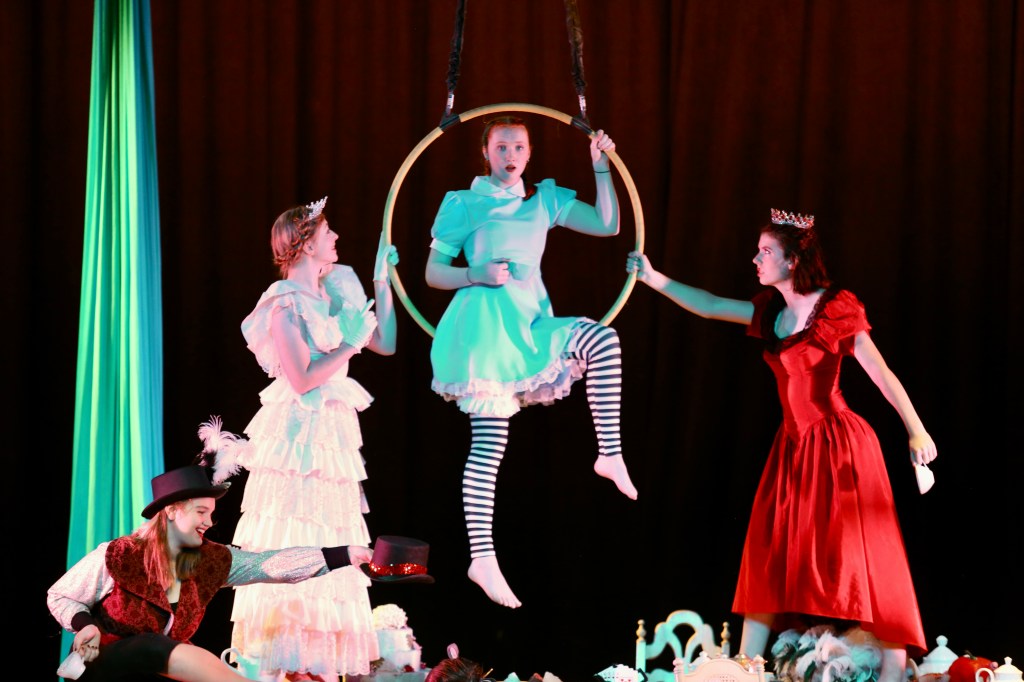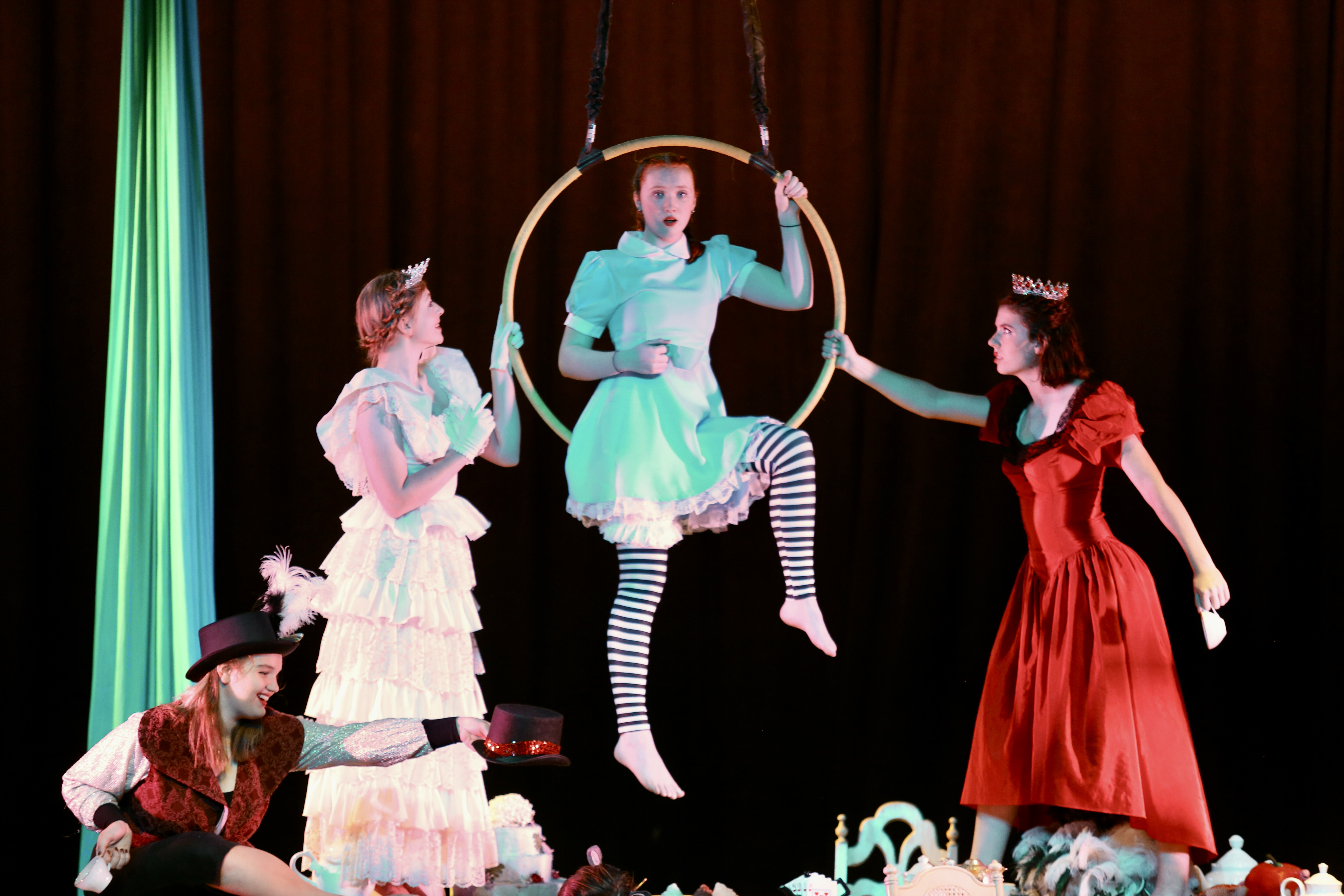 We have incorporated aerial dance and movements into this show that I do not believe the 2015 script included. A few actors rewrote the beginning and end of this show, wanting more coherence and connections with the characters outside of Wonderland and inside.