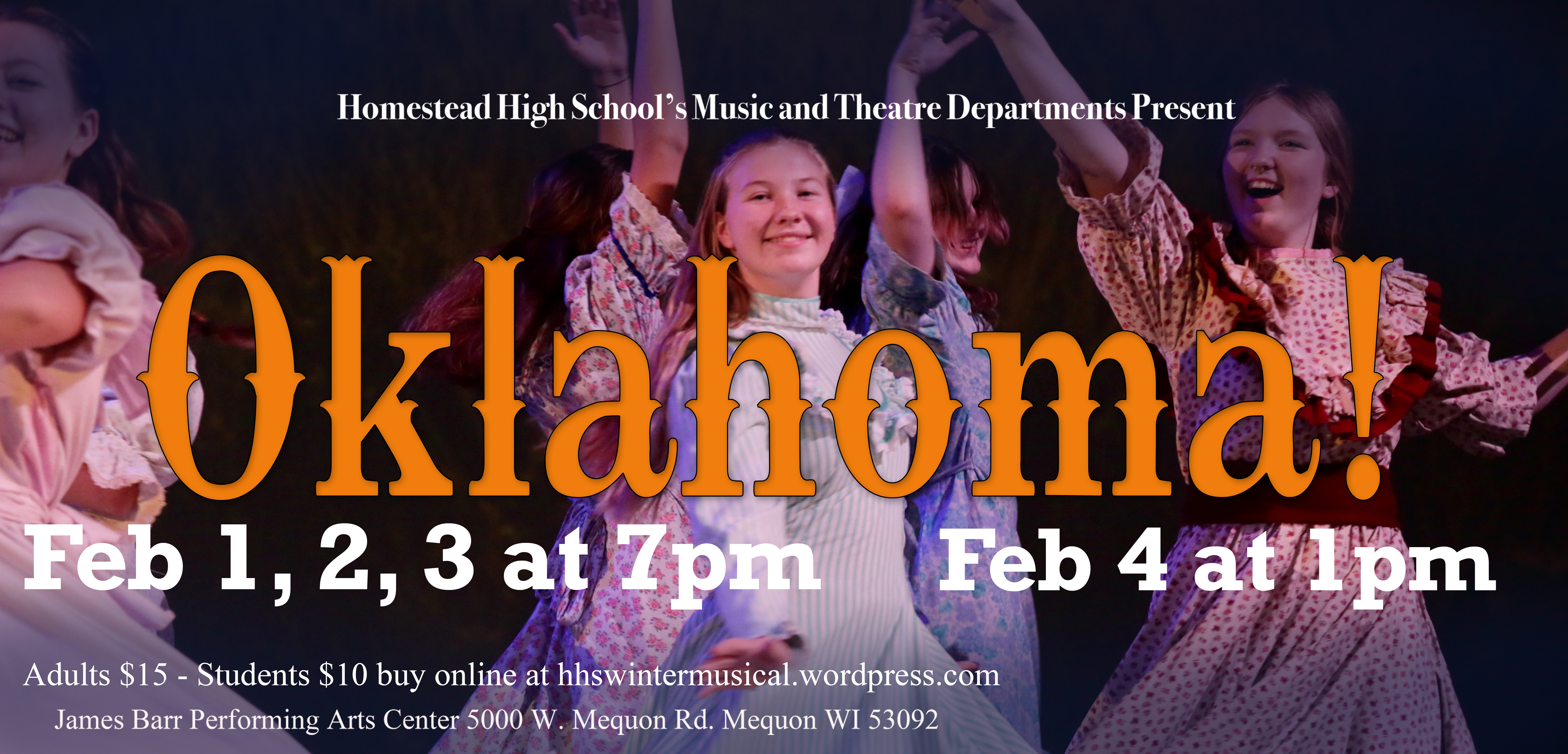 Oklahoma! is about a cowboy named Curly who wants to take a girl named Laurey to the box social. But there is another guy that is in love with Laurey too, the farm help, Jud. There is also Laurey’s friend, Ado Annie, who is in love with Will but Will is trying to buy Ado Annie from her dad to marry her.