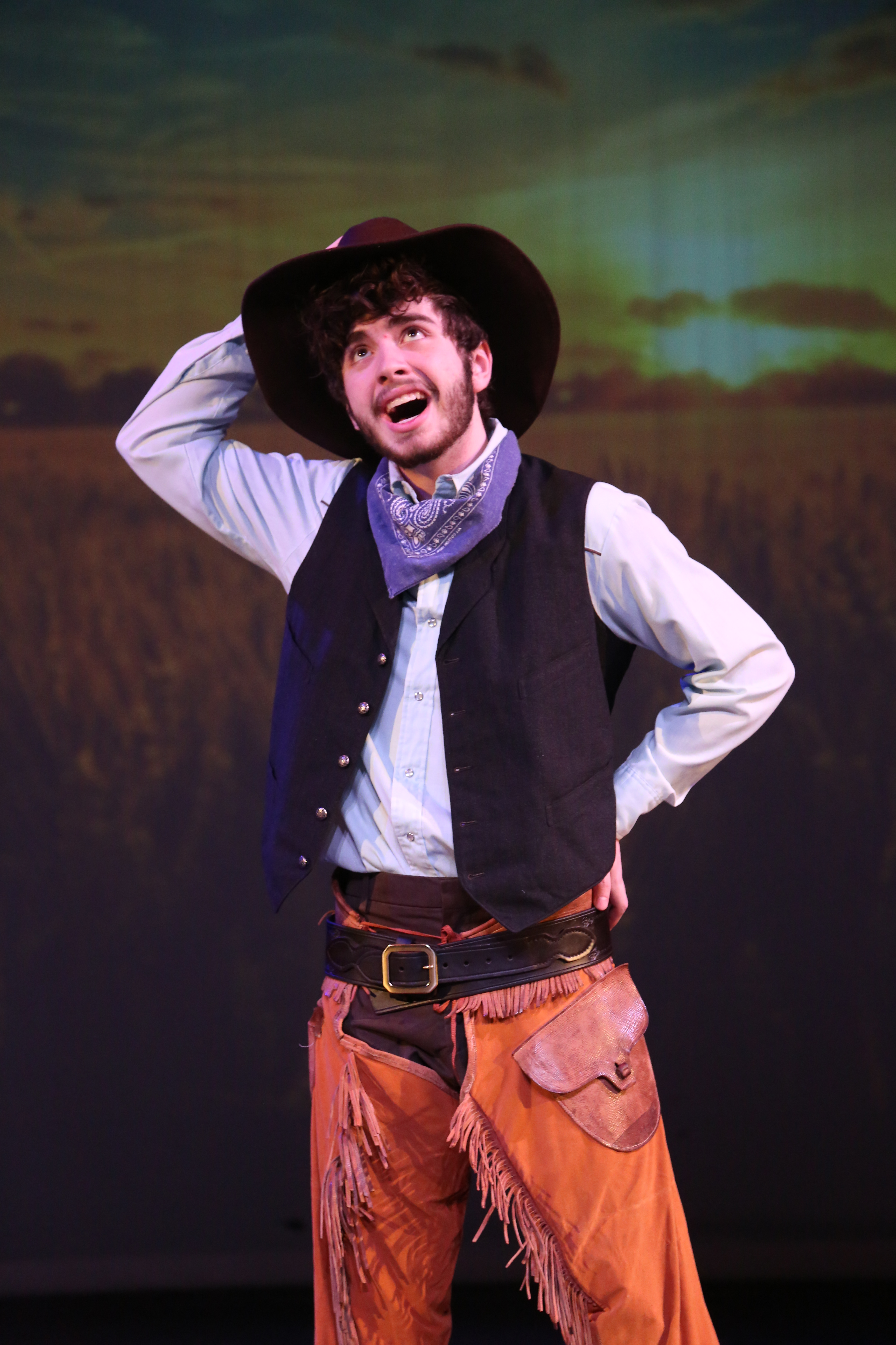 I play Curly McLain, an arrogant but well-meaning ranch hand who has his heart set on Laurey Williams- neither of whom will ever admit outright that they like each other.
