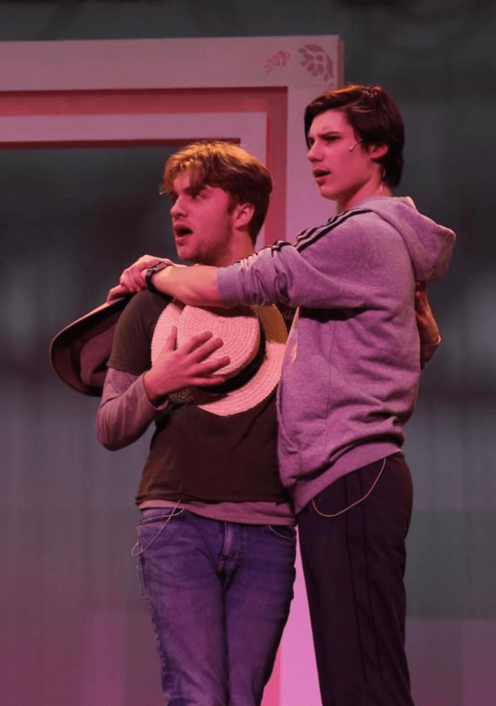 I’m glad you asked! This show is about love (gasp), drama (gasp), and cowboys (yee haw)! So essentially the main plot follows a dude named Curly. He wants to take a girl named Laurey to a box social but has to face the obstacle that is Jud Fry, who is already taking Laurey to the box social. But here’s the tea; Laurey doesn’t want to go with Jud. Meanwhile, an innocent Persian peddler named Ali Hakim is thrown into a predicament where a girl by the name of Ado Annie takes interest in not just him, but SO MANY OTHER GUYS, one of these fine gentlemen being Will Parker (played by myself). Will actually is in love with Ado Annie and gets jealous of Ali Hakim for being with Ado Annie, and feuds with the peddler throughout the show. The thing is, Ali Hakim doesn’t want beef with Will- he just wants to get away from Ado Annie. So to reiterate, this show is about love (gasp), drama (gasp), and cowboys (yee haw)!