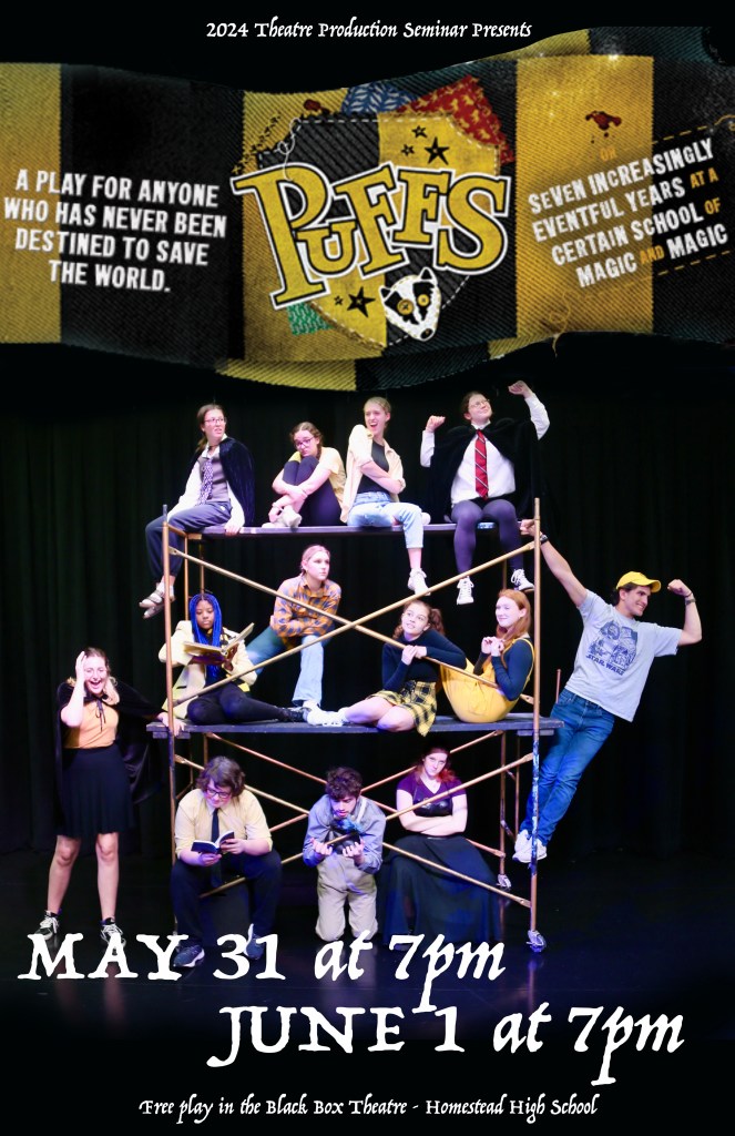 Overall Puffs is such a fun show to be a part of. Not only is this show super cool, the people in the class are amazing. Everyone in this class is so friendly and supportive. Every day I look forward to going to my 5th hour because I know I will have a fun time with the people I love. If you have taken other acting classes or have been a part of Homestead Theater, I highly recommend taking Theater Production Seminar!